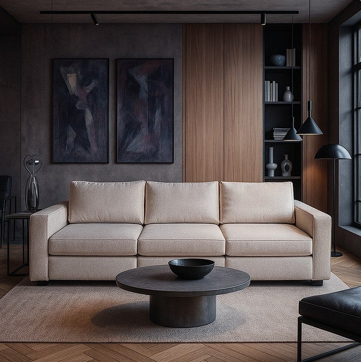 Nossos sofás são produzidos em madeira de eucalipto reflorestado, seco e imunizado, com módulos unidos por sistemas galvanizados que garantem resistência e durabilidade.