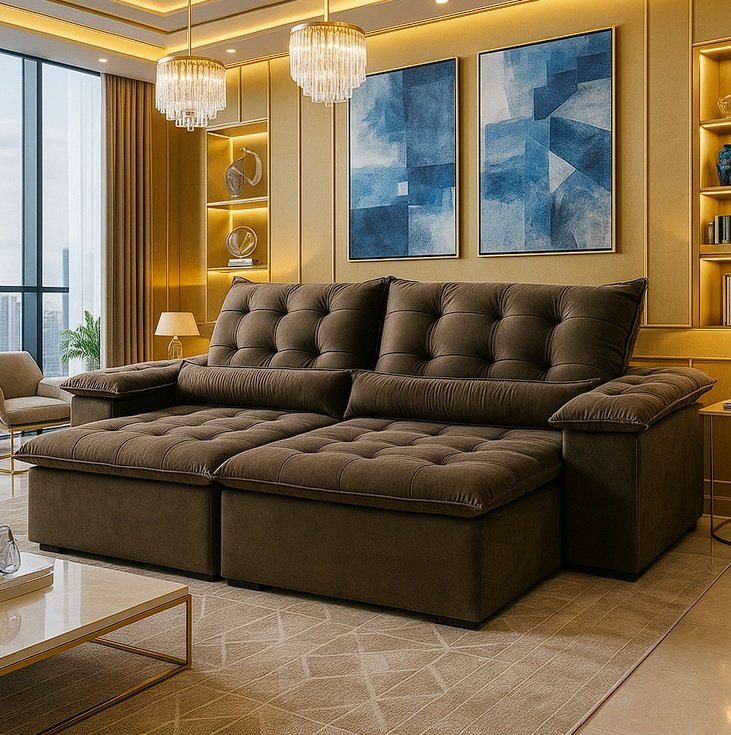 Nossos sofás são produzidos em madeira de eucalipto reflorestado, seco e imunizado, com módulos unidos por sistemas galvanizados que garantem resistência e durabilidade.