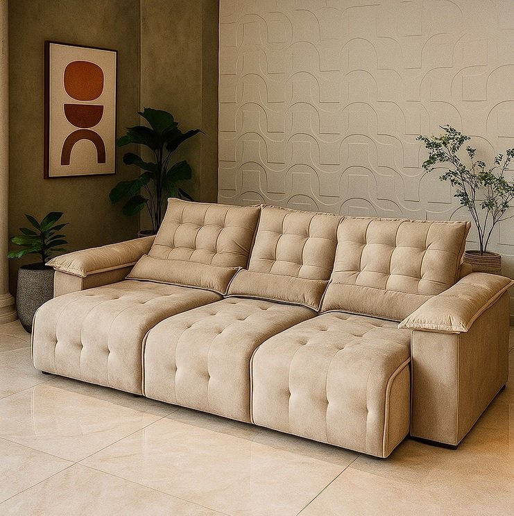 Nossos sofás são produzidos em madeira de eucalipto reflorestado, seco e imunizado, com módulos unidos por sistemas galvanizados que garantem resistência e durabilidade.